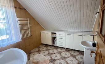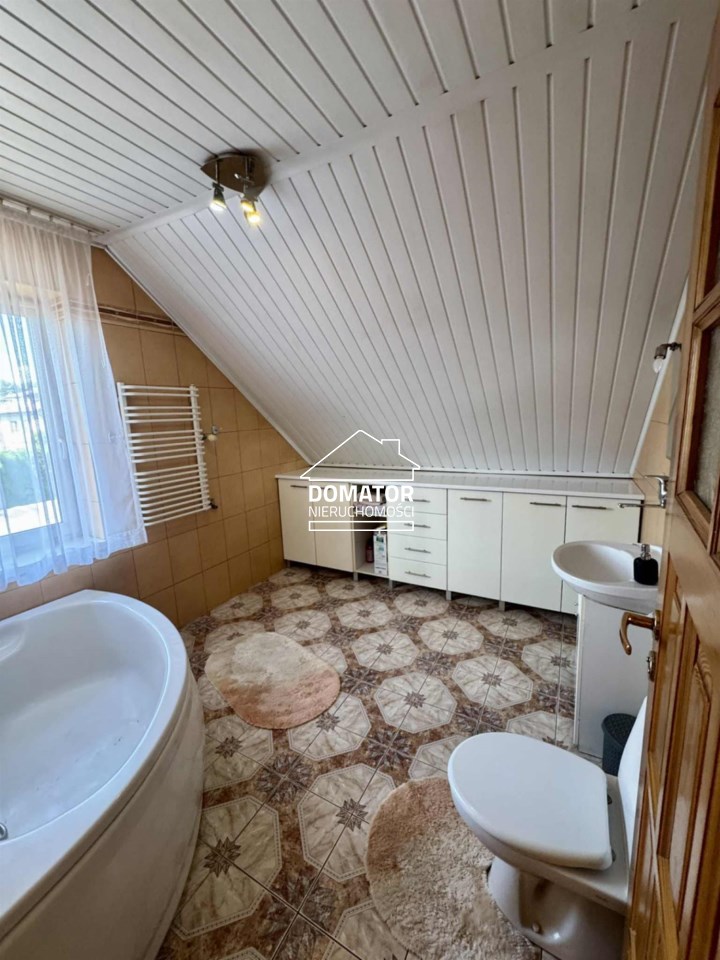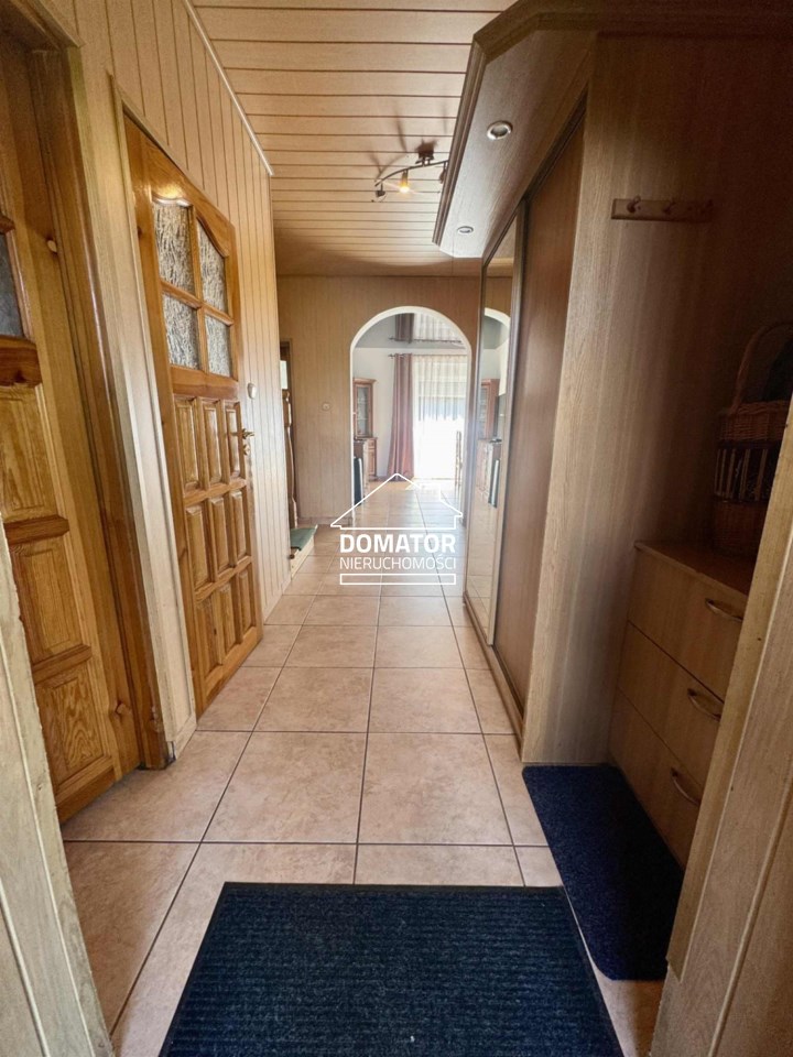 Dom główny, wybudowany w 2003 roku, ma powierzchnię użytkową ok 130m². Budynek jest ocieplony, zadbany i gotowy do wprowadzenia. Ogrzewanie realizowane jest za pomocą pieca na ekogroszek. W domu znajduje się łazienka z wanną, a zabudowa kuchenna pozostaje w cenie (pozostałe meble do uzgodnienia).