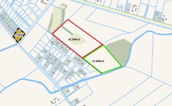 działka o powierzchni 21 694 m² (zaznaczona kolorem zielonym) – cena: 542 350 zł.