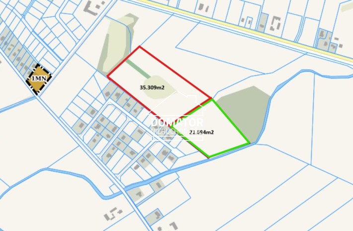 działka o powierzchni 35 309 m² (zaznaczona kolorem czerwonym) – cena: 882 725 zł,