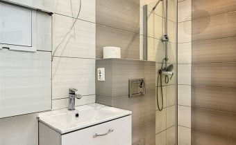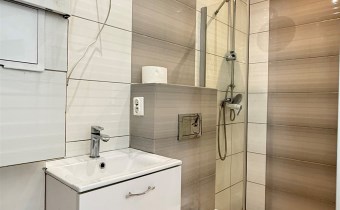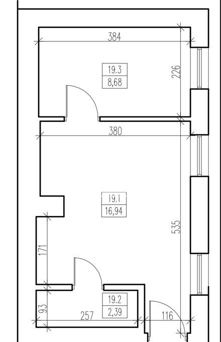 Mieszkanie składa się z dwóch pokoi 16,94 m2 i 8,68 m2, w tym większy z aneksem kuchennym i łazienki 2,39 m2.