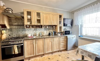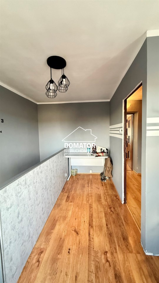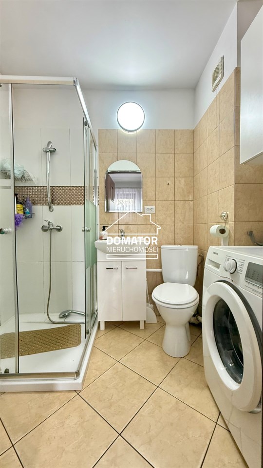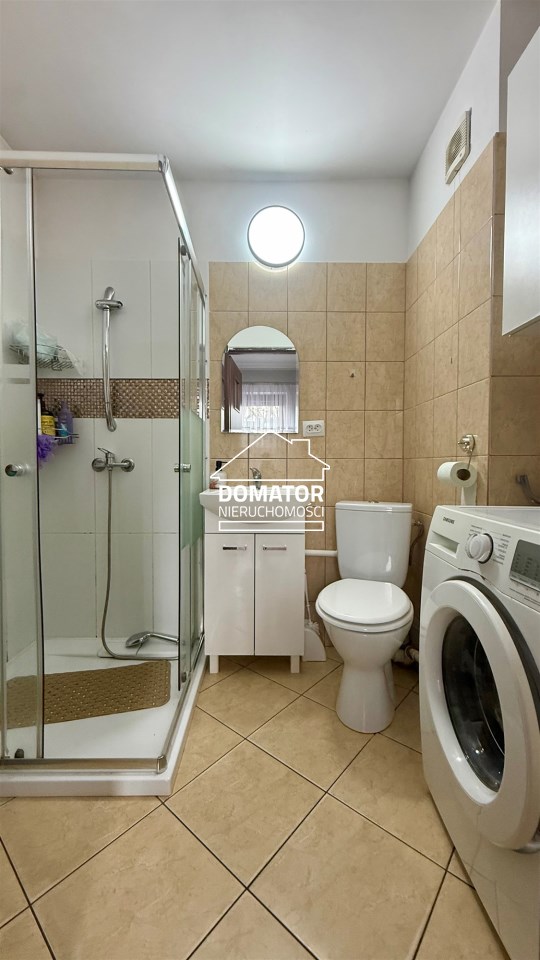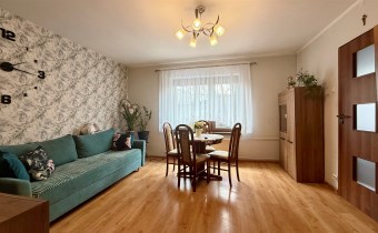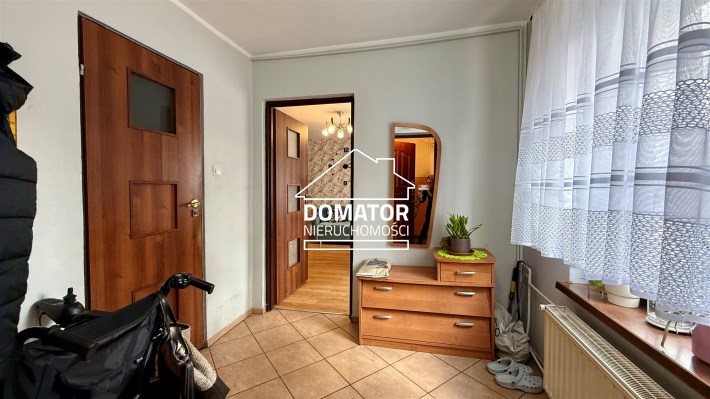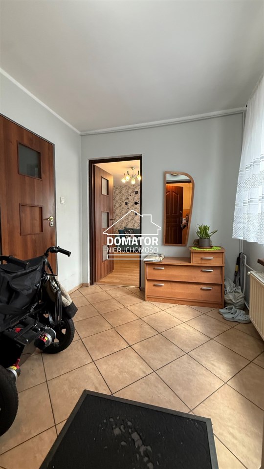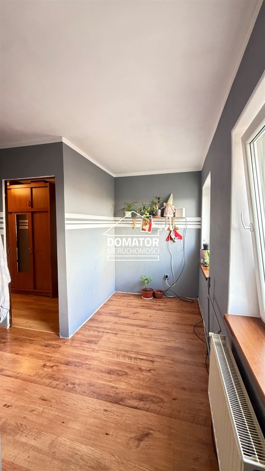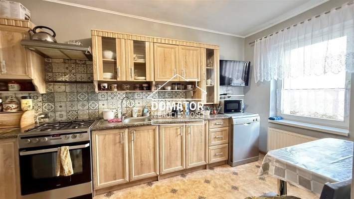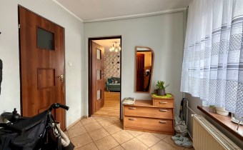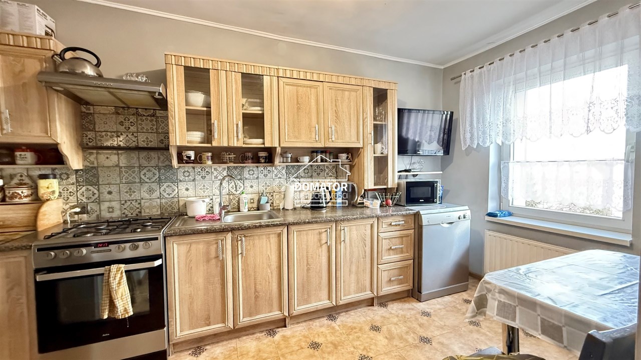 składa się z dwóch pokoi, łazienki z WC oraz oddzielnej, dużej i jasnej kuchni. Z drugiego pokoju prowadzą schody do dolnej części mieszkania o powierzchni 31,87 m², w której znajdują się dwa dodatkowe pokoje. Każde mieszkanie posiada oddzielną Księgę Wieczystą i oddzielne wejścia. Garaż na terenie podwórka z oddzielnym wjazdem zamykanym bramą. Ogrzewanie centralne piecem na węgiel lub ekogroszek z możliwością wymiany na ogrzewanie gazowe . Woda ogrzewana bojlerem elektrycznym.