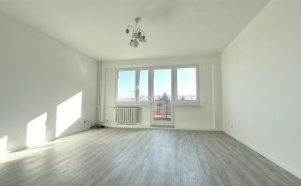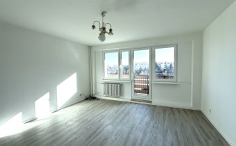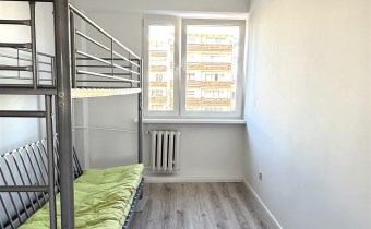 Mieszkanie po remoncie, gotowe do wprowadzenia. Wstawiono nowe okna, odmalowano ściany i drzwi wewnętrzne, w dużym pokoju i jednym małym położono nowe panele.