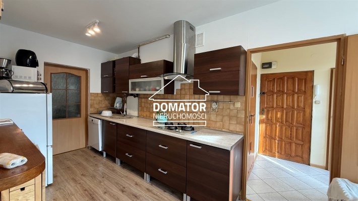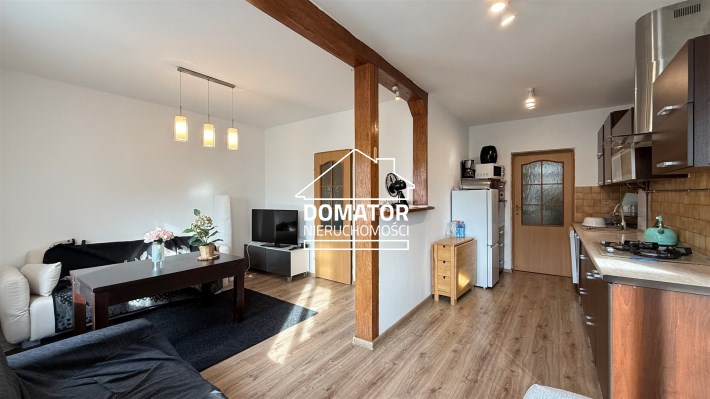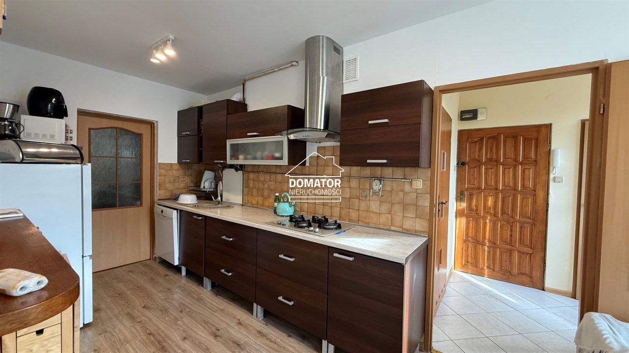 Mieszkanie kompletnie wyposażone. Przestronny aneks kuchenny ze sprzętem AGD (lodówka, zmywarka, piekarnik oraz mikrofala).