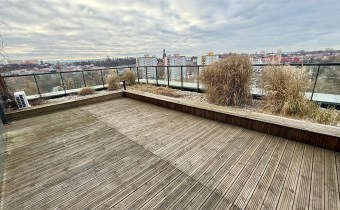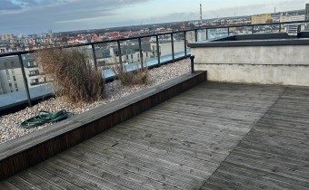 Z salonu jest wyjście na przestronny, zadaszony taras o powierzchni 40 m2, z którego rozciąga się niesamowity widok na Operę Nova, Wyspę Młyńską oraz Nowy Port. Codziennie możesz cieszyć się pięknymi widokami i poczuć magię miasta spod swojego dachu.
